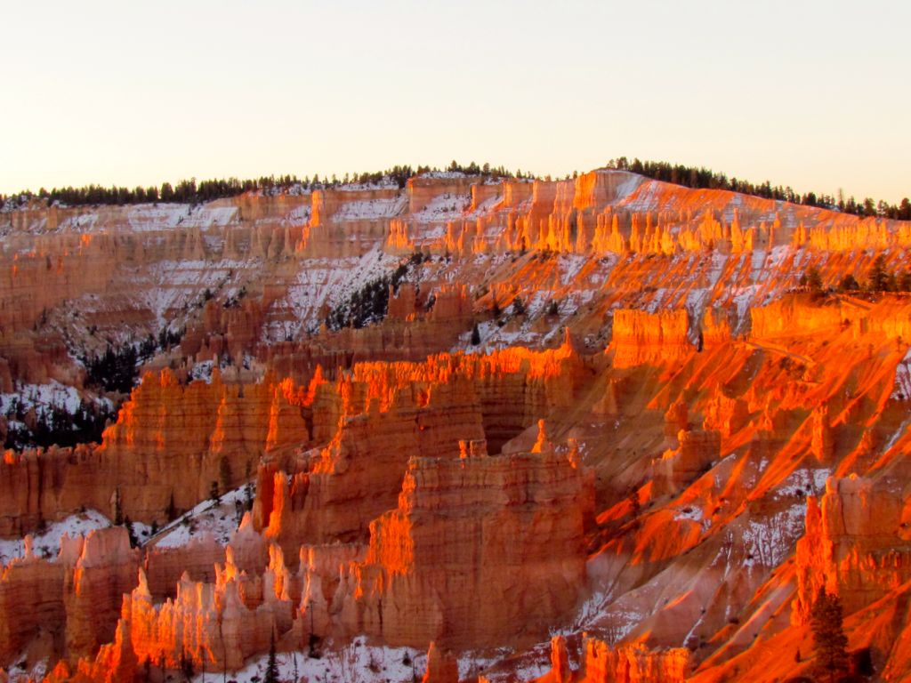 We watched the sunrise on our second morning in Bryce, with better planning we could have easily done this on the previous day. Braving the cool crisp November morning with other avid photographers we waited for the morning sun to illuminate the amphitheatre. As the sun peeked over the horizon cameras started clicking.