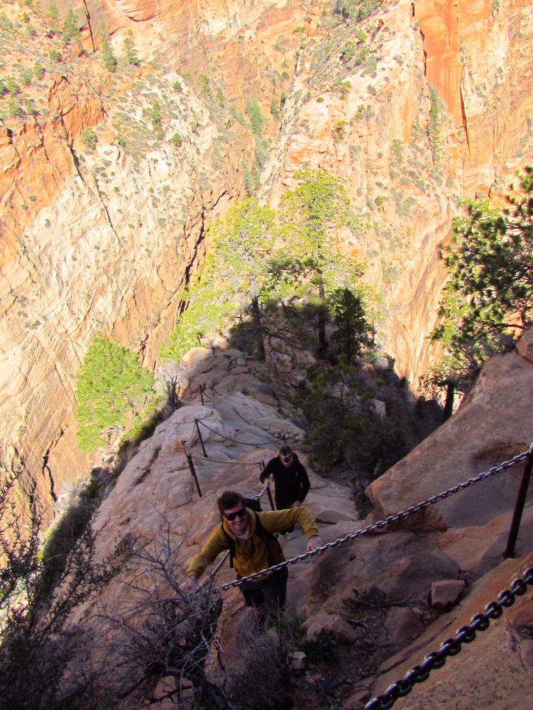 Zion National Park offers many hiking trails. We elected on Angels Landing, one of the most thrilling and famous hikes in the US national parks, delivering spectacular views of Zion Canyon and a nerve-wracking challenge to the top.